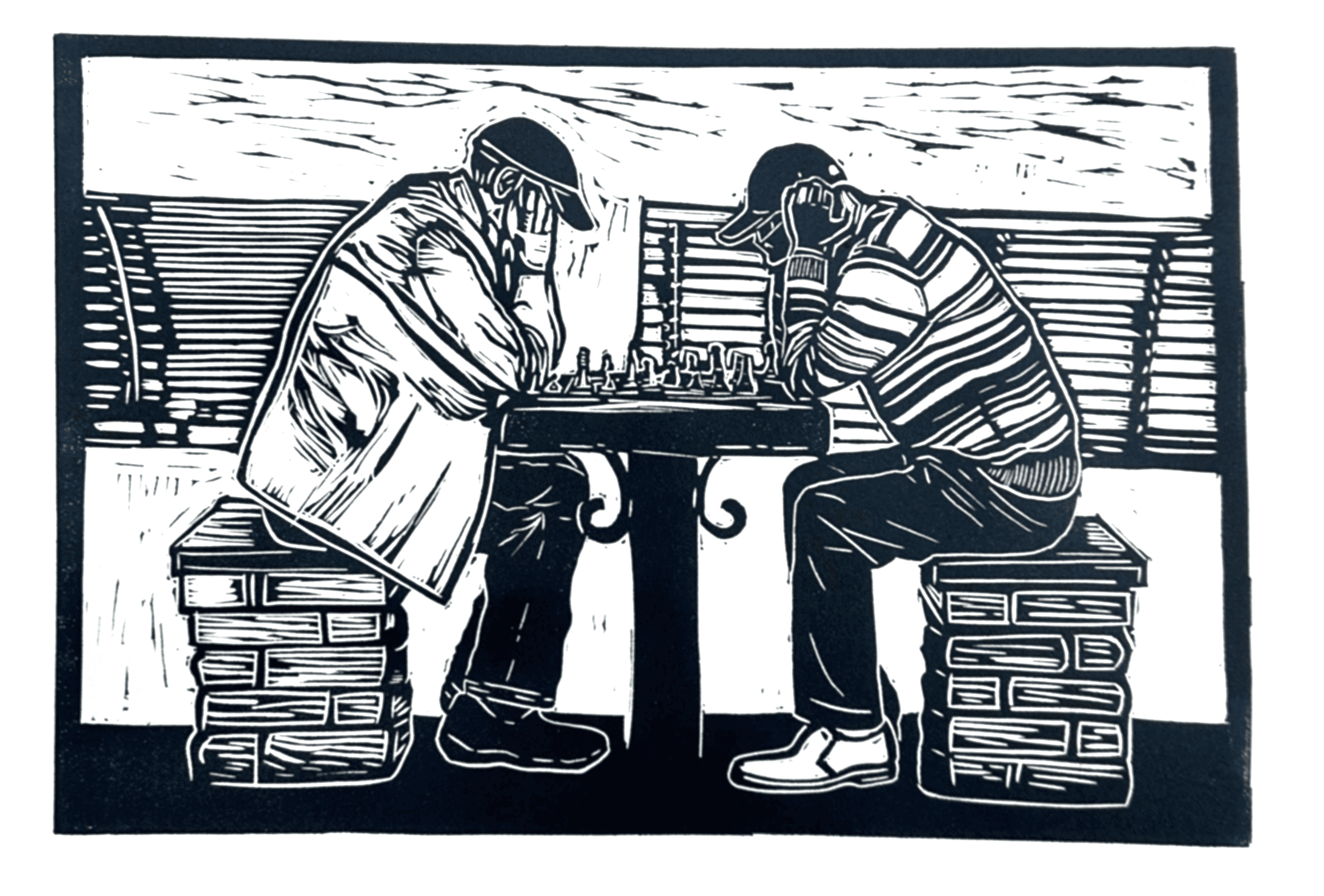Through digital illustration and printmaking techniques, she captures snippets of everyday life by the lakeshore.